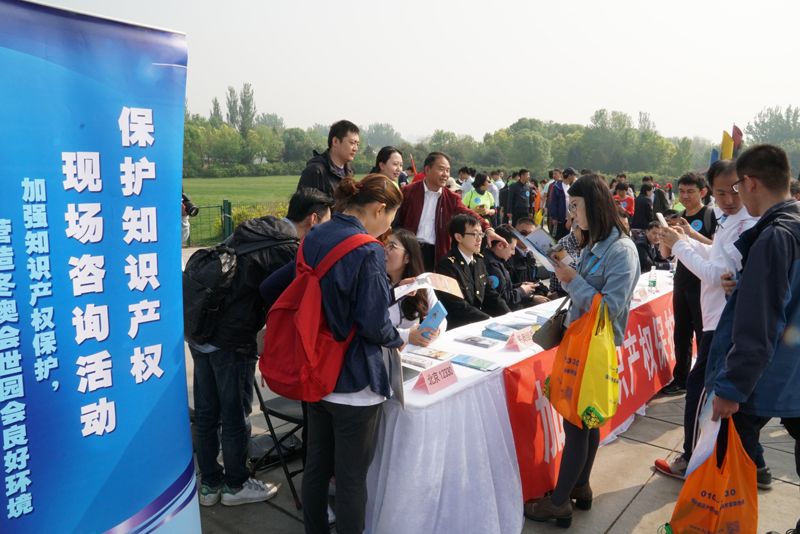 4月26日,在第18个世界知识产权日,北京市知识产权办公会议办公室组织开展的主题为“加强知识产权保护,营造冬奥会世园会良好环境”知识产权户外咨询活动在奥林匹克森林公园举行。北京市知识产权局相关领导出席。北京市知识产权办公会议成员单位、冬奥组委、世园局的代表以及来自区知识产权局、北京12330分中心、工作站的工作人员、大学生保护知识产权志愿者、北京市绿色使者志愿者、企业代表共300余人参加了此次活动。